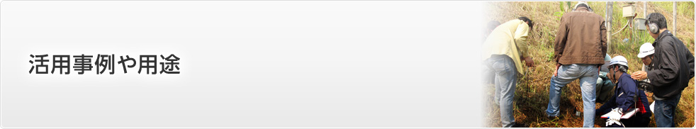 次に、地下流水音探査の応用事例をご紹介しますが、ここに紹介した事例以外の用途にも用いることができますので、疑問点や不明点は遠慮なくお問い合わせください。