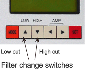 Settings for the filters are made by means of operation of ▲・(LOW) and ▼ (HIGH) switches.